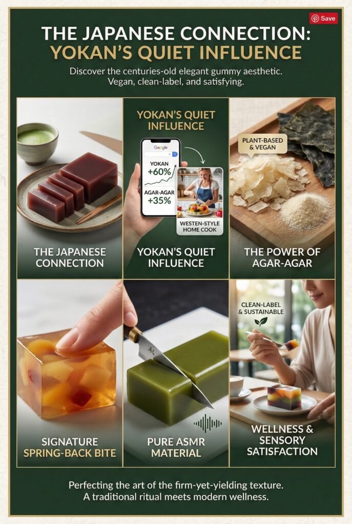 Searches for yokan jumped 60%, and agar-agar climbed 35% as Western audiences discover these plant-based gelling agents. Agar-agar is derived from seaweed and sets at room temperature, creating that signature spring-back bite. It’s vegan. It’s clean-label. It’s got texture integrity that gelatin can’t match.